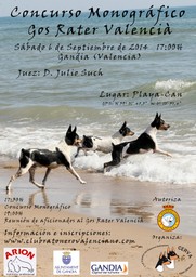 Dentro de las Jornadas Caninas organizadas como inauguración oficial de la playa para perros PLAYA-CAN ubicada en la localidad de Gandia (Valencia), nuestro club, organizó un concurso monográfico del Rater Valencià. El juez invitado para ello fue D. Julio Such, juez internacional de la raza y Presidente de la SVFRC.