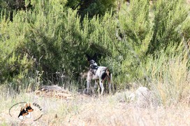 a la dificultad de la zona, se habían soltado diez conejos, para que rastros y posibilidades fueran recientes y mayores, hay que tener en cuenta que en esta actividad reunimos a perros y guías que ya cazan con otros neófitos, por lo tanto es también un importante aprendizaje, especialmente para los guías menos conocedores. Comenzamos la batida de la amplia zona, en forma de ala, cubriendo el terreno, con muchos "perdederos" para las piezas, con lo que barajábamos la posibilidad de volver a casa con el zurrón vacio, pero nuevamente nuestros raters nos demostraron que son muy capaces, consiguiendo cobrar, a lo largo de las mañana, cuatro piezas, ¡que fueron celebradas como cuarenta! A la hora en que el calor apretaba algo más, recogimos, satisfechos por el resultado pero sobre todo, felices de haber disfrutado de esos parajes con nuestros perros. A ellos también se les veía felices y más tranquilos que al empezar. Cerca de tres horas de monte relajan a todos.