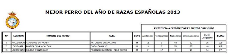 La R.S.C.E. ha publicado su ranking de mejores ejemplares del año en razas españolas, es decir de aquellos que han obtenido más y mejores calificaciones en las exposiciones que organiza, y el primer lugar ha sido para Randeros Ok Mckey, un Gos Rater. Detrás de este reconocimiento hay muchos kilómetros recorridos, mucho tiempo dedicado, mucho esfuerzo empleado y toda la ilusión de sus criadores y propietarios, Gemma, José y Rocío.